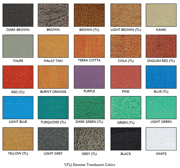 Like acid stains, water-based stains (typically a blend of acrylic polymers and pigments) penetrate the concrete to produce permanent color, ranging from translucent to opaque depending on the product. Both types of stain can be applied to new or old and plain or integrally colored concrete.