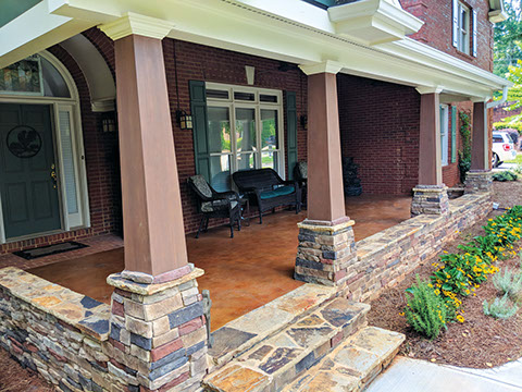 AFTER STAINED PORCH WITH STAMPED CROSS