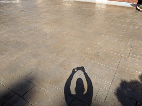 BEFORE STAINED PORCH WITH STAMPED CROSS