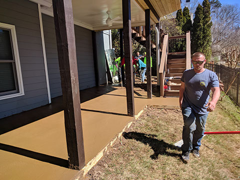 BEFORE STAMPED AND ACID WASH PATIO - WOOD PLANK