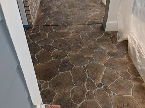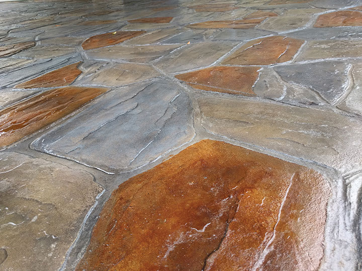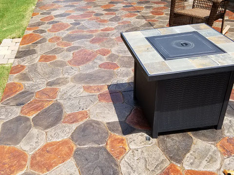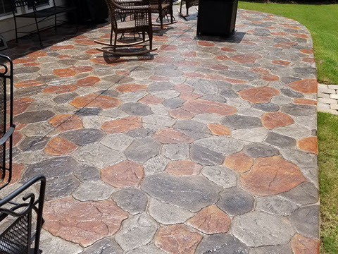 AFTER STAMPED AND STAINED PATIO - RANDOM STONE