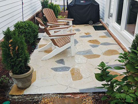 AFTER STAMPED AND HAND PAINTED PATIO - RANDOM STONE