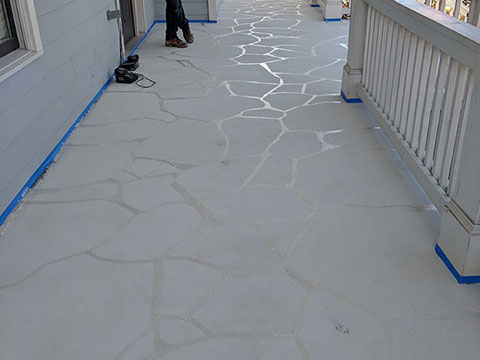 AFTER TAPED GROUT LINES INTO FLAGSTONE OVERLAY